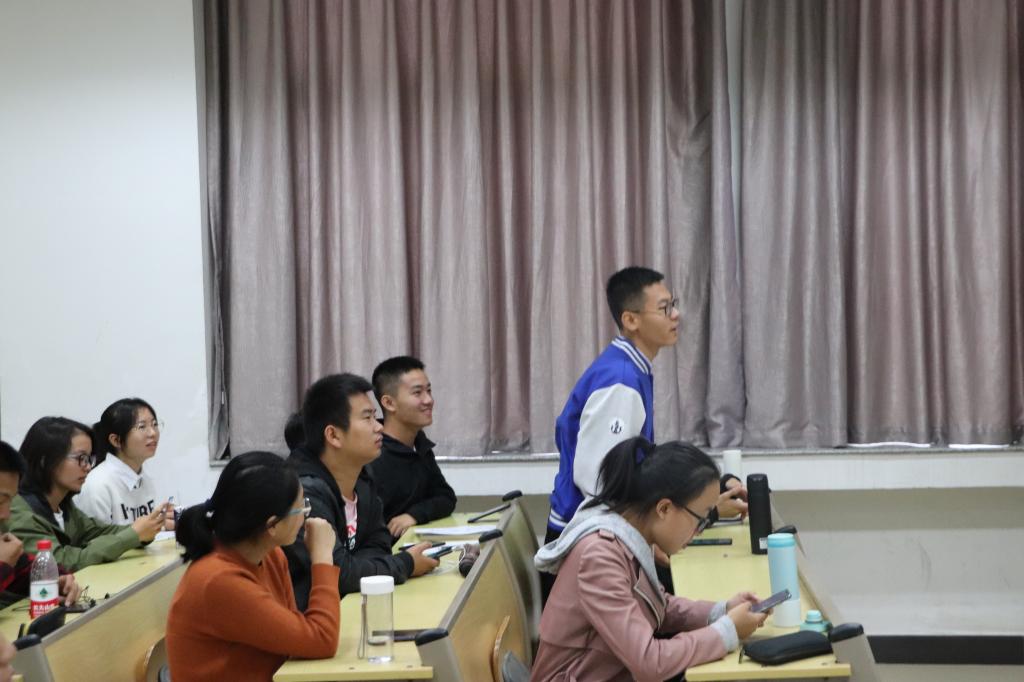 10:20时,团会进入了精彩的知识答辩环节,同学们分成了4个小组进行同场PK,同学们热情参与其中,现场气氛十分活跃。