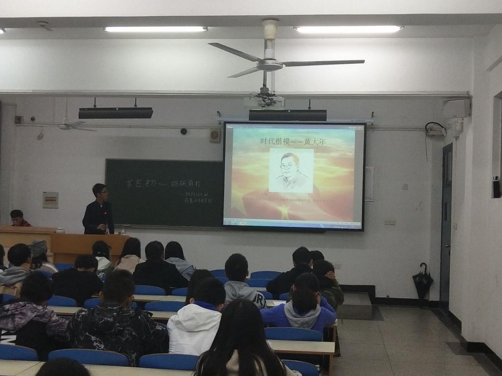 (主持人在给同学们介绍时代楷模-黄大年的事迹)