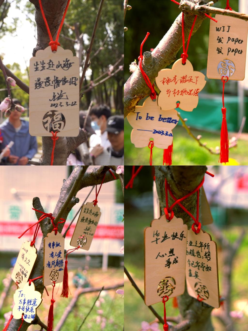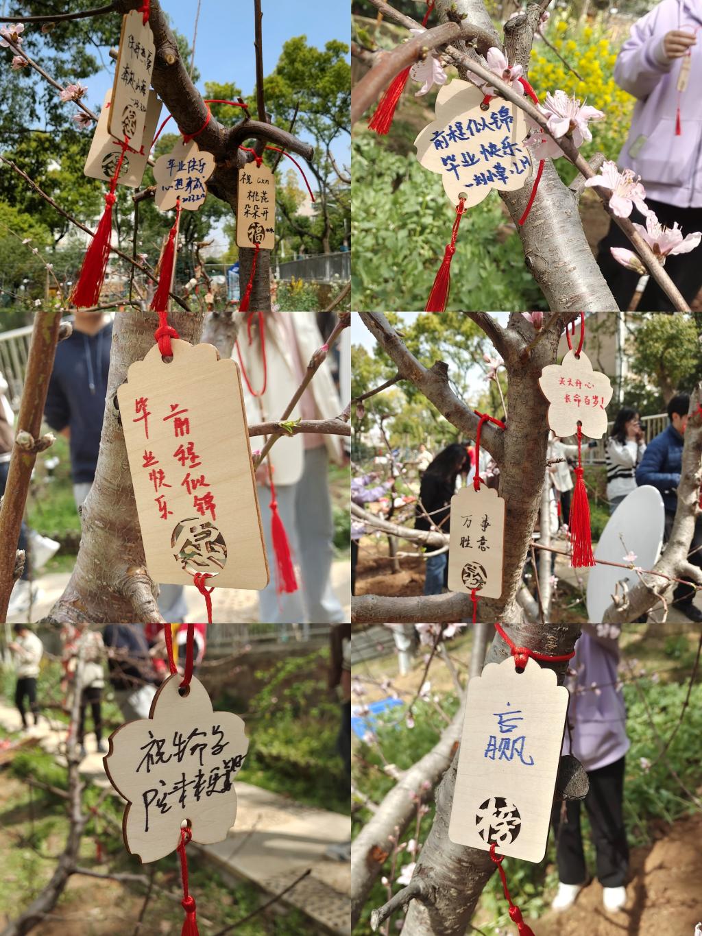活动最后,师生纷纷写下美好祝愿悬挂在桃树枝头。