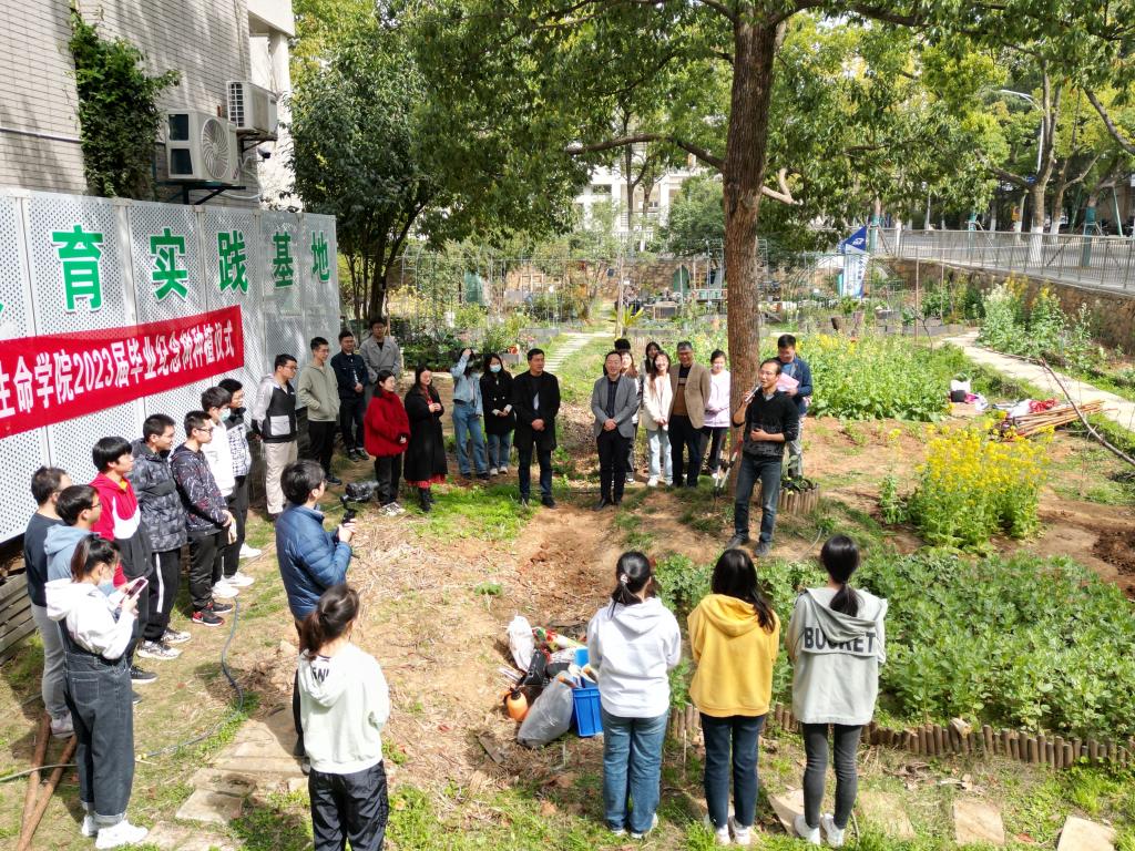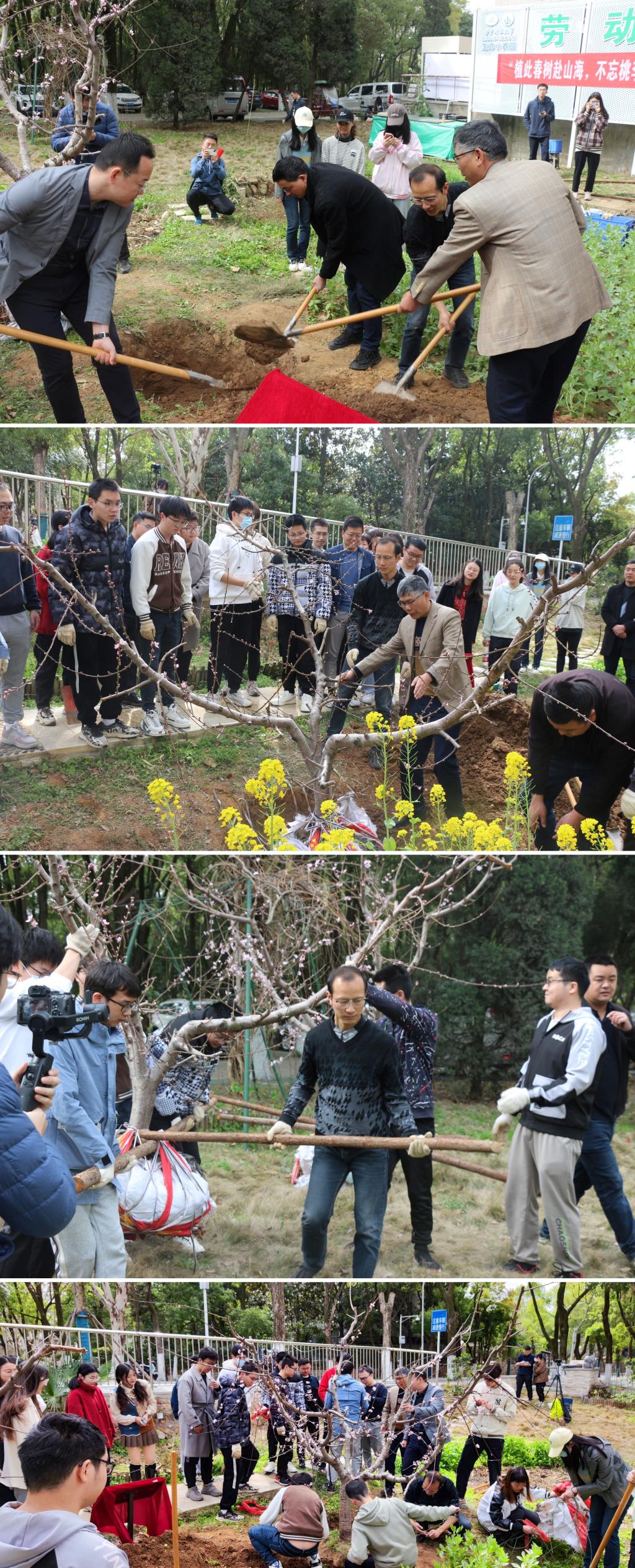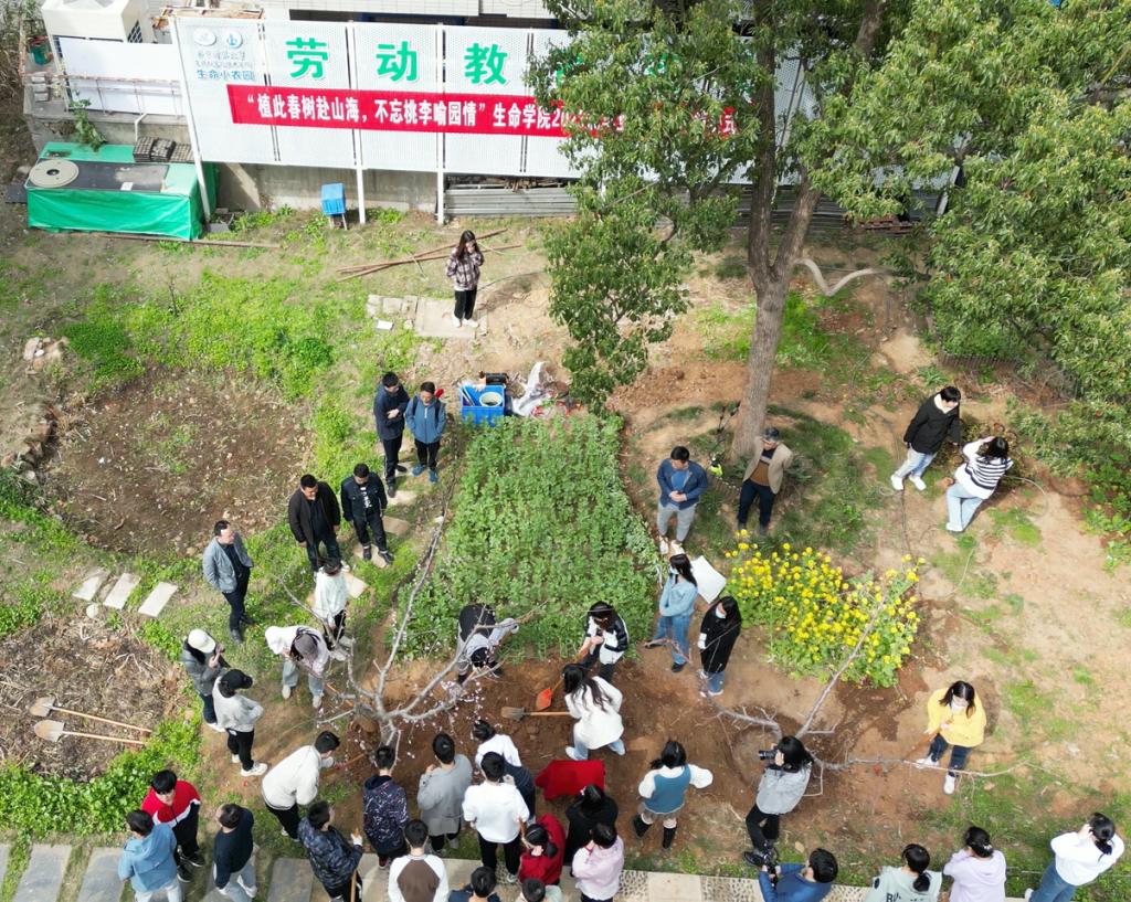 3月12日上午,在全国第45个植树节来临之际,生命学院组织开展“植此春树赴山海,不忘桃李喻园情”2023届毕业纪念桃树种植活动。学院党委副书记占艺老师,校驻东河村工作队副队长张绍浩老师,园林科张昌林老师,学院教师代表和2023届本研毕业生代表参加植树活动。师生齐聚学院劳动教育实践基地(生命小农园),共植毕业纪念桃树,表达美好祝愿。
