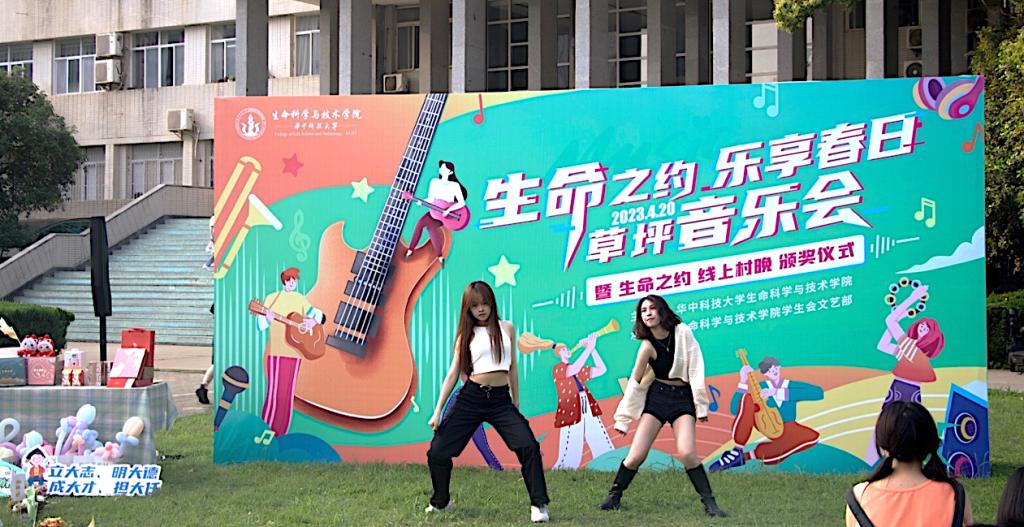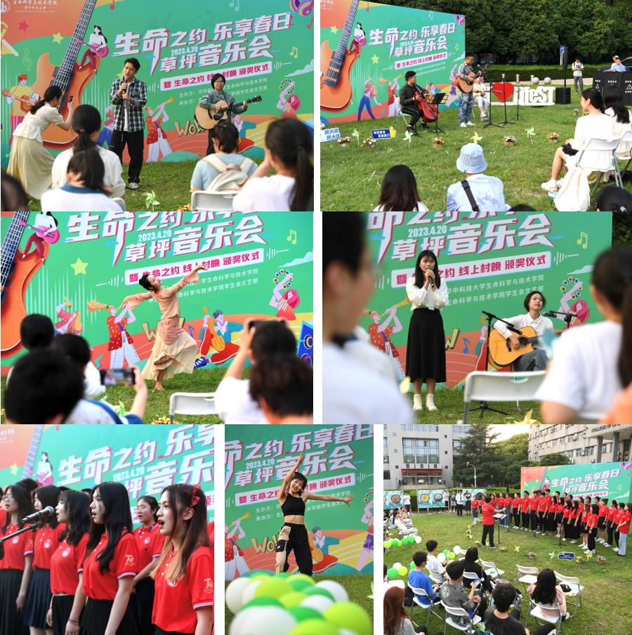 生命学院100余名师生在草地上共同参与活动,尽显青春活力。音乐会上,8个精选歌舞节目相继登场,舞出风采,唱出热情。节目间隙还开展了学科特色美育活动“生命之约,跨年村晚”颁奖典礼、生命学子在第一届湖北省生物培养皿设计艺术大赛优秀作品展览,以及生命科学知识趣味问答。活动现场观众欢声笑语、掌声不断。