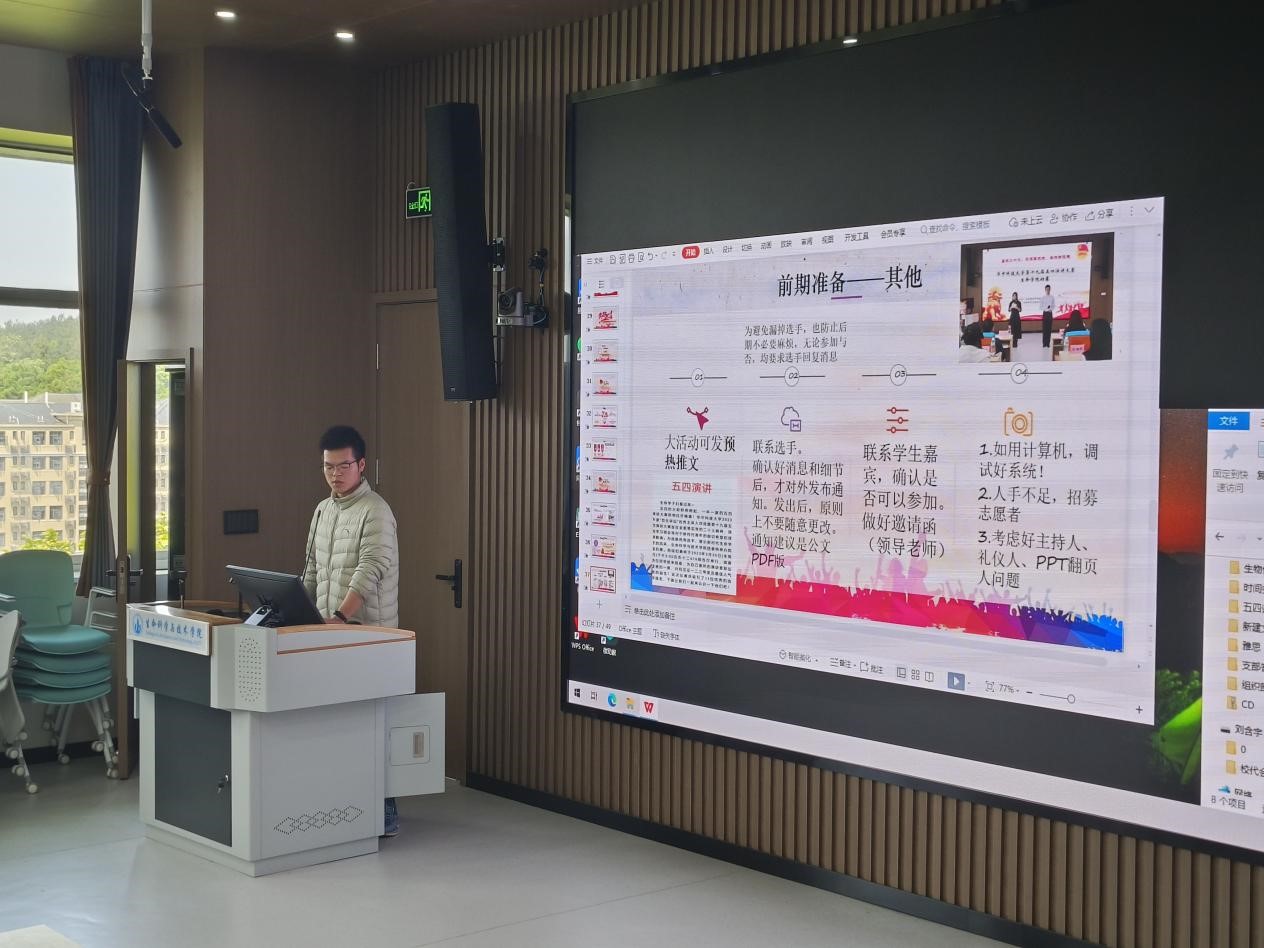 颁奖结束,各部门负责人汇报近期的部门工作推进情况。组织部彭钰豪同学、文艺部张嘉迅同学分别向大家分享了五四演讲大赛和草坪音乐会的活动举办经验,充分探讨了如何办出流程顺畅、盛大精彩、师生融合、喜闻乐见的优质活动。