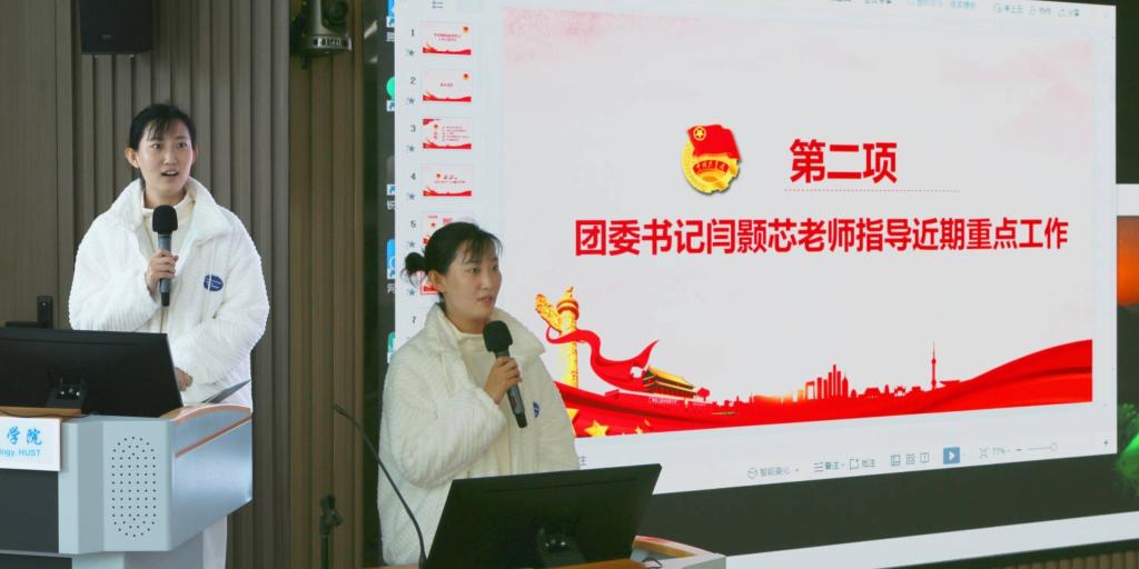会议伊始,全体师生齐唱团歌,随后闫颢芯老师指导近期重点工作。她同大家分享了学院五四评优结果的各项喜人成绩,肯定了团委、学生会各部门全体同志的辛勤付出。同时她强调了近期筹备的生命菁英训练营闭营仪式的重要性,用“仪式感”和“家文化”来凝聚团委、学生会。此外,她预告了本届工作人员换届述职以及下一届工作人员换届竞选的工作通知,要求各部门尽早开展储备干部谈心谈话与遴选工作,重视人员更迭对于部门发展的本质影响,希望每个部门都能保持青春活力与强大战斗力。