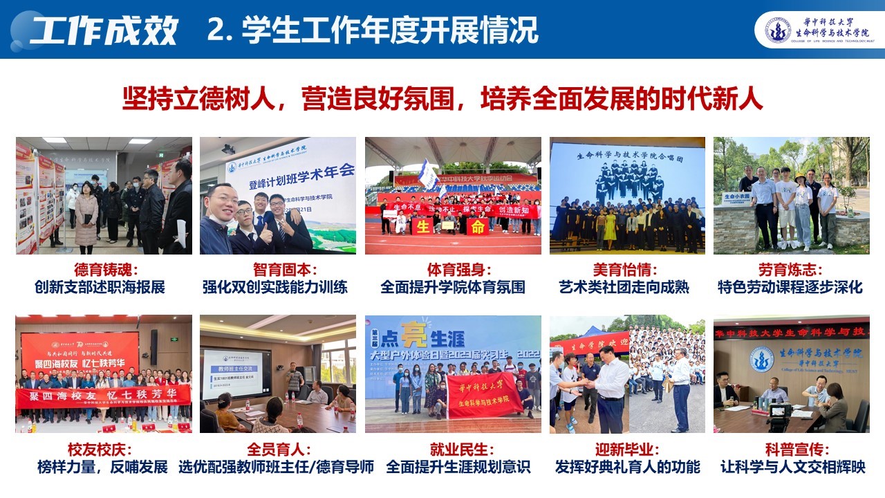 未来,生命学院学工队伍将继续围绕立德树人根本任务和“学生发展”这个工作中心,“传承延续”华中大生命学院40余年发展所凝练出的LIFE文化,探索“三个融合”拥抱大思政格局,并在长期扎实的工作基础上坚持“守正创新”。