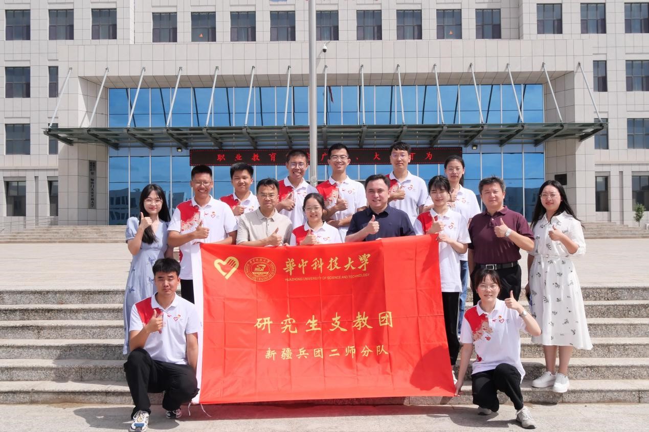 张朝晖一行与校研究生支教团新疆兵团二师分队志愿者合影