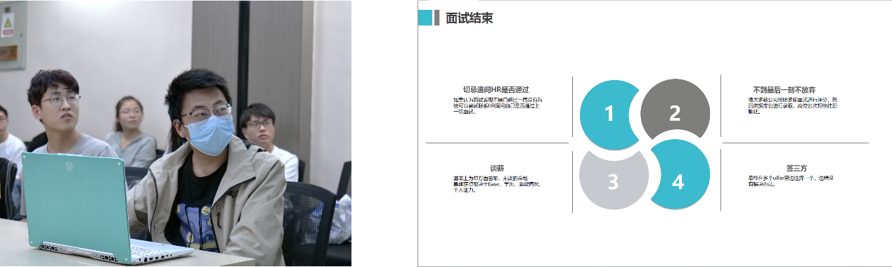 2020级生物医学工程硕士段立哲的就职去向是武汉迈瑞医疗技术研究院有限公司图像处理岗。他鼓励同学们要满怀信心寻找工作,认清自己做好定位,依据意向的行业、公司、岗位制作简历。在简历中最重要的板块应当是项目经历与相应的成果和收获。他建议同学们针对自己的主要项目经历制作PPT,既可以梳理总结过去几年的成绩,又可以在线上面试中更好的展示自己。段立哲建议大家在等待面试的过程中坚定一些,不到最后一刻不放弃。