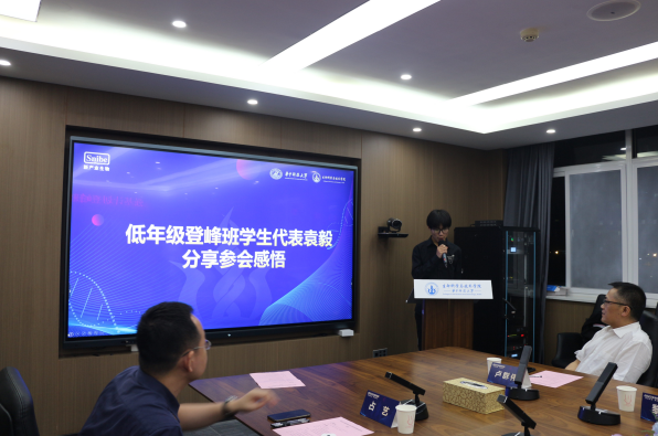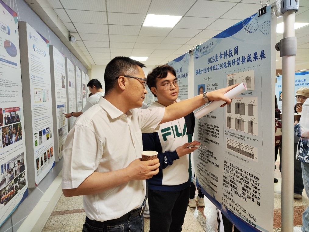 6月5日晚, “生命双创周”系列活动之强基计划登峰班2020级科研创新成果展在东十一楼二楼中厅与221会议室成功举办,现场包括科研创新成果展示、师生交流,学习生活心得分享以及颁奖仪式等环节。生命学院党委副书记兼副院长卢群伟教授、生命学院党委副书记占艺副教授、本科生院黎丽老师受邀参加。生物医学工程系丁明跃教授、王敬教授,生物科学系张贤钦教授、徐承启教授、苏莉教授,生物技术系付春华教授、张后今教授,生物信息与系统生物学系杜伟教授,纳米医药与生物制药系胡军教授、赵彦兵教授以及教务科、学工组部分教师代表参加活动。