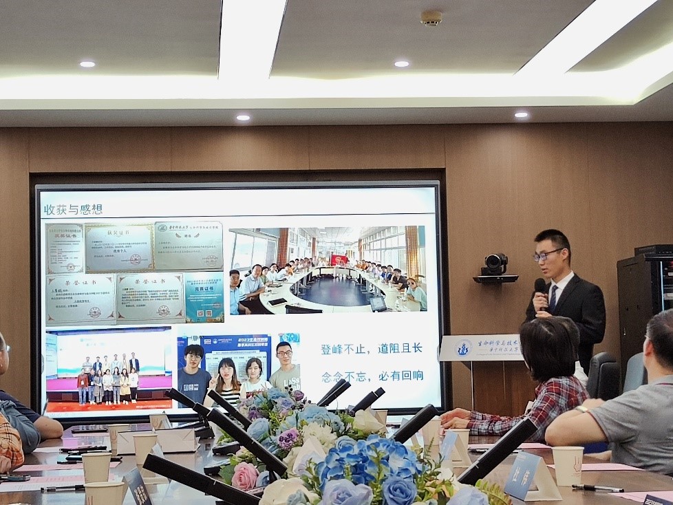 活动现场,卢群伟教授致辞,学生代表王睿鹏与周鑫炜分享学习生活心得。