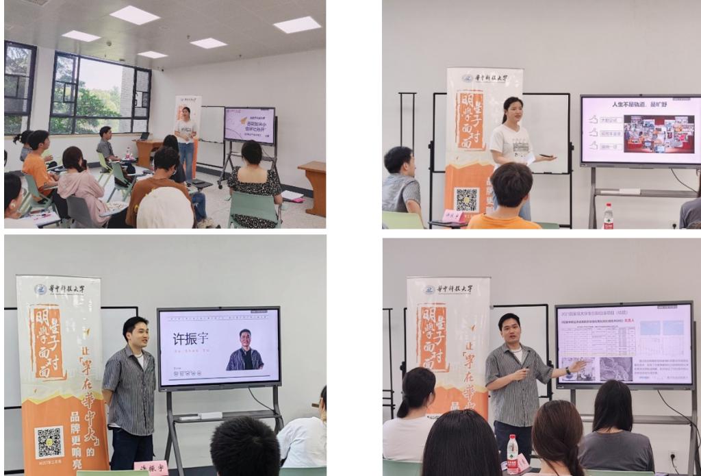 生命学院的肖楠同学向大家分享了她自己的大学经历,讲述了自己一步步克服学业压力、自卑迷茫、情绪困局等难题,最终收获无限可能的故事。她鼓励同学们勇敢尝试,能学会接纳、直面胆怯、拥抱困难,攀过一座座高峰,拓展人生的广度。她还建议同学们在日常生活中做好时间规划,早日开展实习实践、进入实验室。环境学院的许振宇同学分享了自己大学生活的方式。