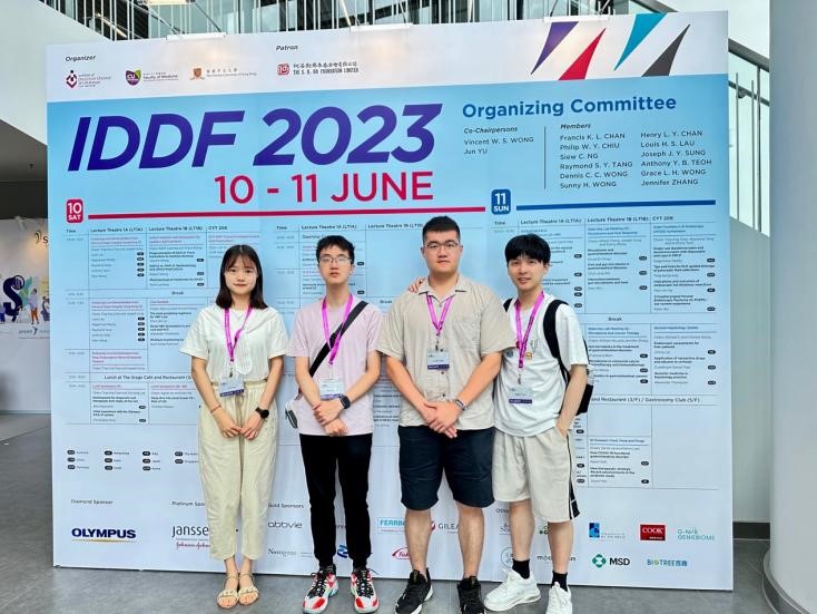 2023年6月09日-12日,生命学院宁康教授团队指导的登峰计划1901班本科生张皓鸿、研究生熊广州、程铭悦等受邀参加了在中国香港特区举办的国际消化系统疾病论坛 (International Digestive Disease Forum 2023) 并进行四项研究工作的展示。其中张皓鸿、熊广州分别汇报了题为“Utilizing tumor microenvironment microbial profiles and host gene expressions for reliable survival subtyping in liver hepatocellular carcinoma”和“Enterotype-dependent microbial response to cardiac surgery with cardiopulmonary bypass”的研究成果。相关研究成果也被胃肠道研究领域国际顶级期刊《Gut》收录。