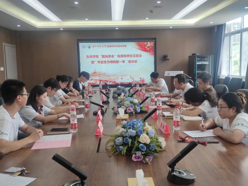 (通讯员 李玉雪)6月13日中午,“阳光茶会”师生见面会暨“毕业生为母院献一策”座谈会在东十一楼221会议室举行。学院党委书记刘笔锋、党委副书记占艺、党政办公室主任吴颖、党政办公室副主任陆婕、科研共享平台副主任雷敏、研究生辅导员冷康鑫、研究生毕业代表及德育助理参会。