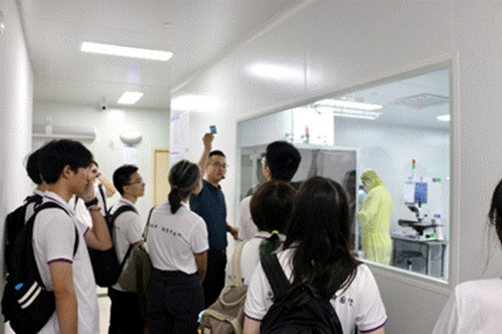穿上防尘服,师生们走进生产车间,近距离地观察到了繁忙的工作场景和规模壮大的全产业链。实验室里,显微镜下的细胞、试管中的化学试剂,都是每一个“生命人”对“卡脖子”技术的不懈攻关,实验人员操作的每个环节都显现出生命科学领域的前沿技术和创新动力。在这里,科技与人类健康、生命的关系紧密相连,每一个细胞、每一片药物、每一次科研成果落地转化的背后,都是科技工作者辛勤的努力。