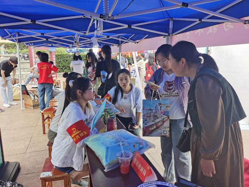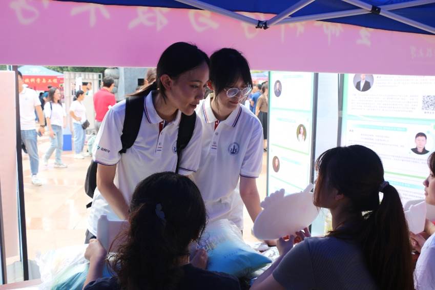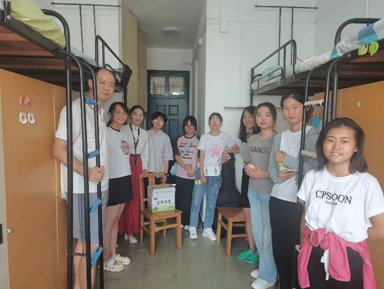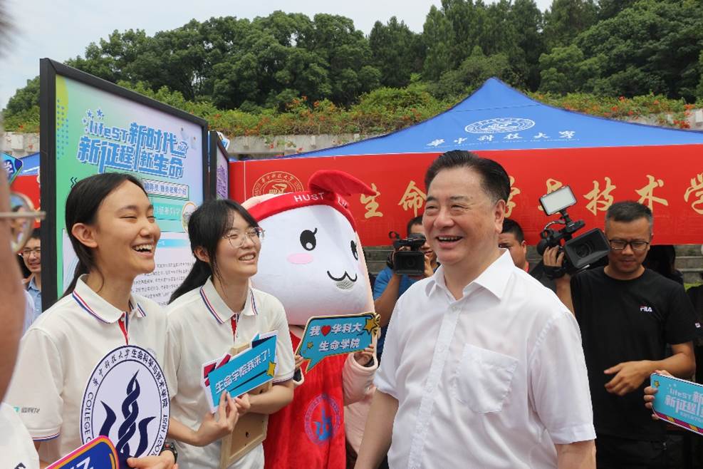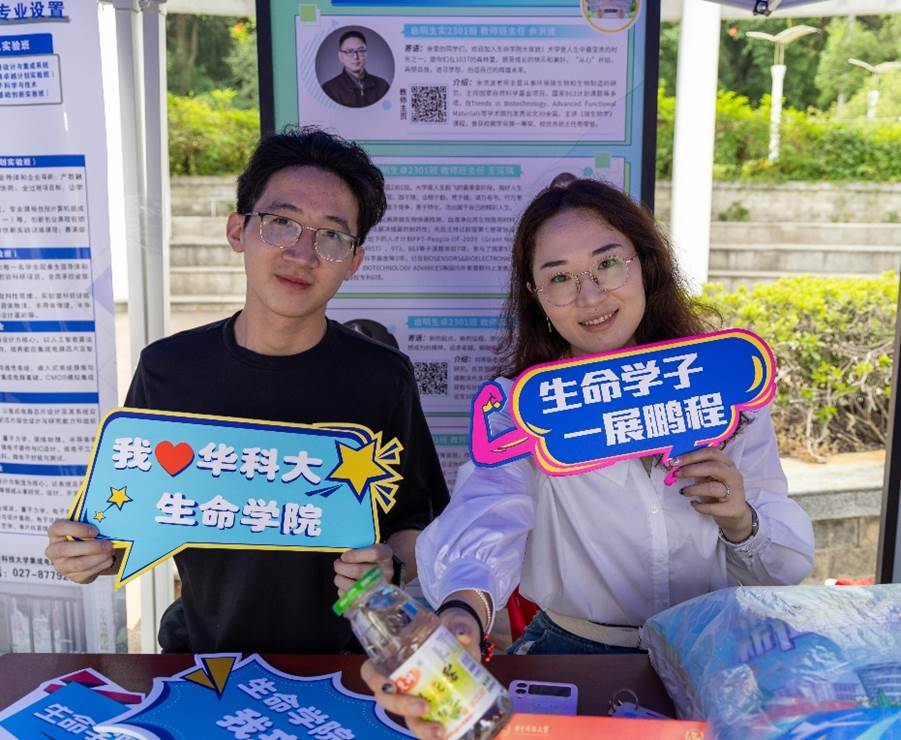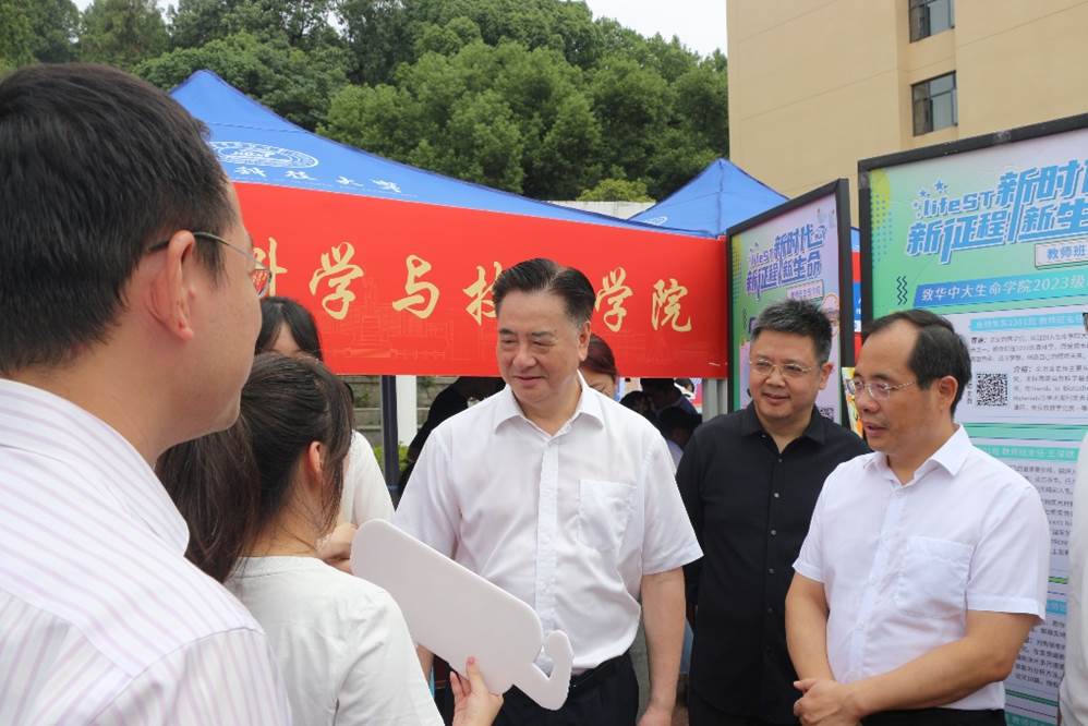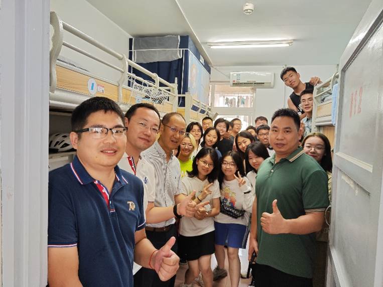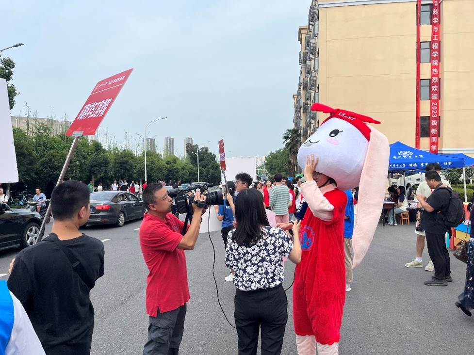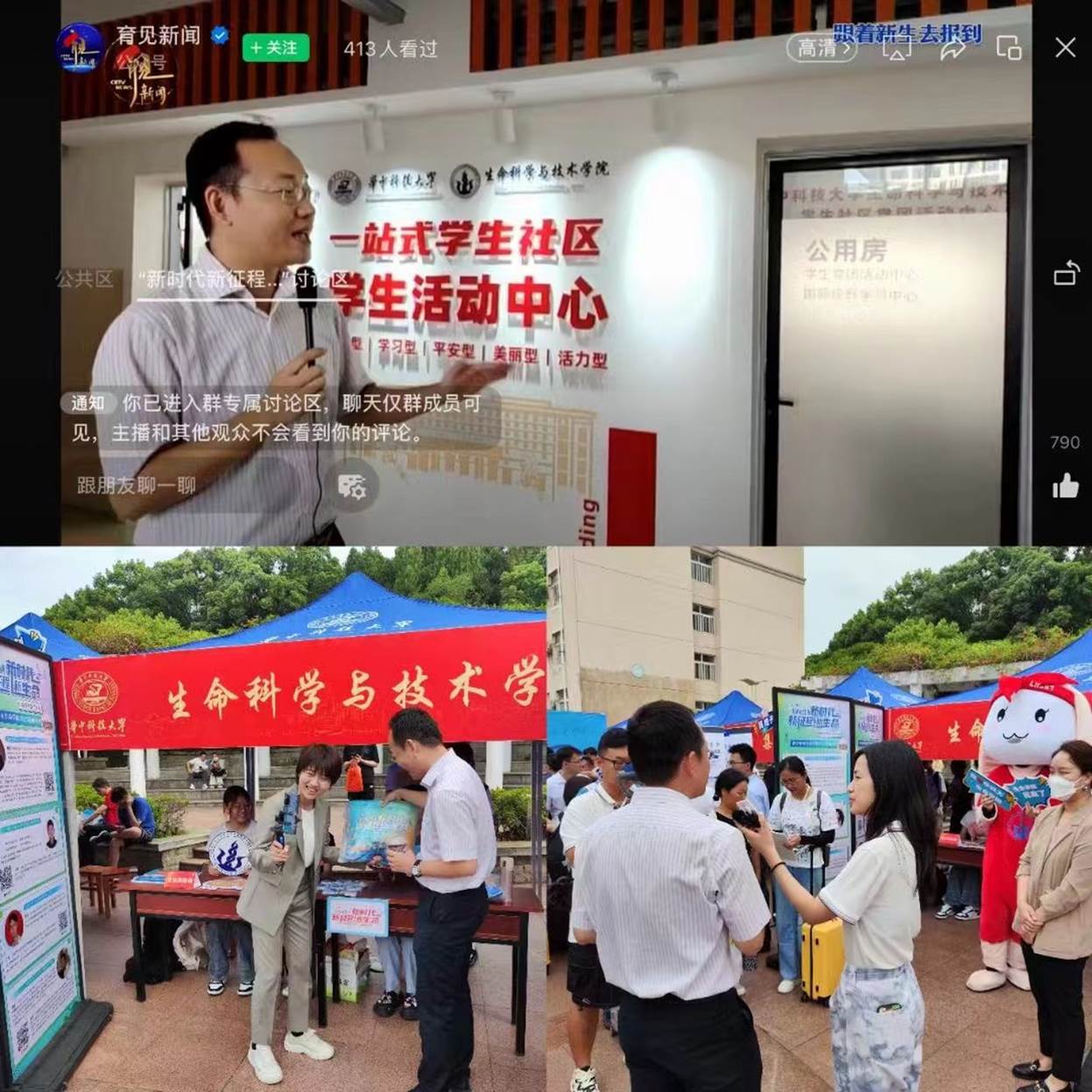 生命学院党委副书记占艺接受中国教育电视台、湖北广播电视台、极目新闻直播采访,介绍生命学院在学生宿舍内新建的一站式学生社区活动中心和迎新盛况。