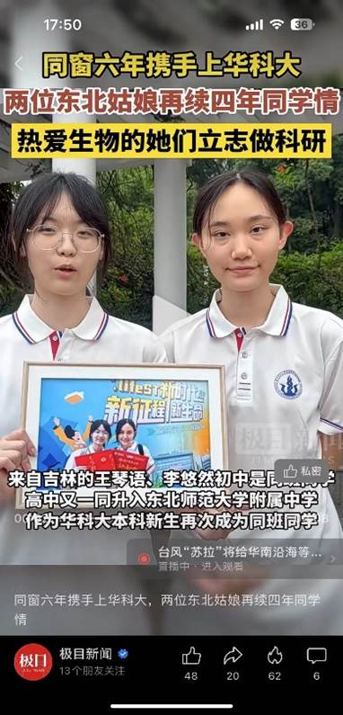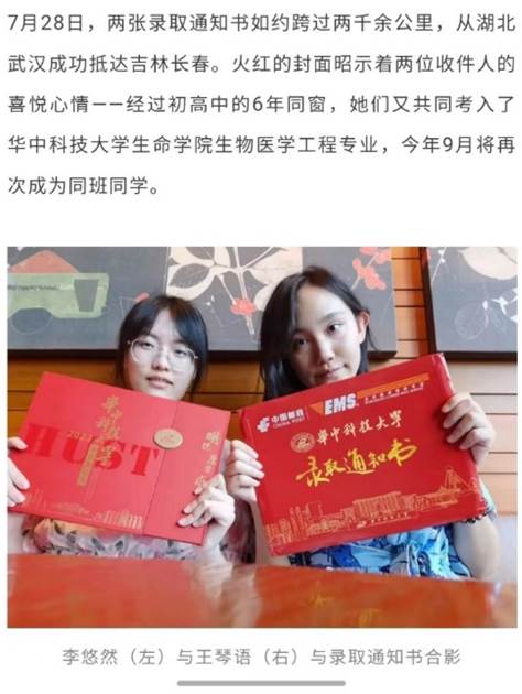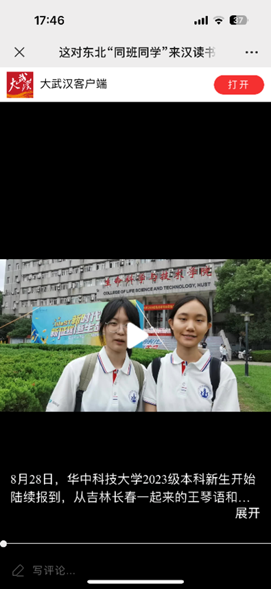湖北经视、长江日报、极目新闻、williamhill英国微信公众号报道生命学院2023级本科新生李悠然、王琴语