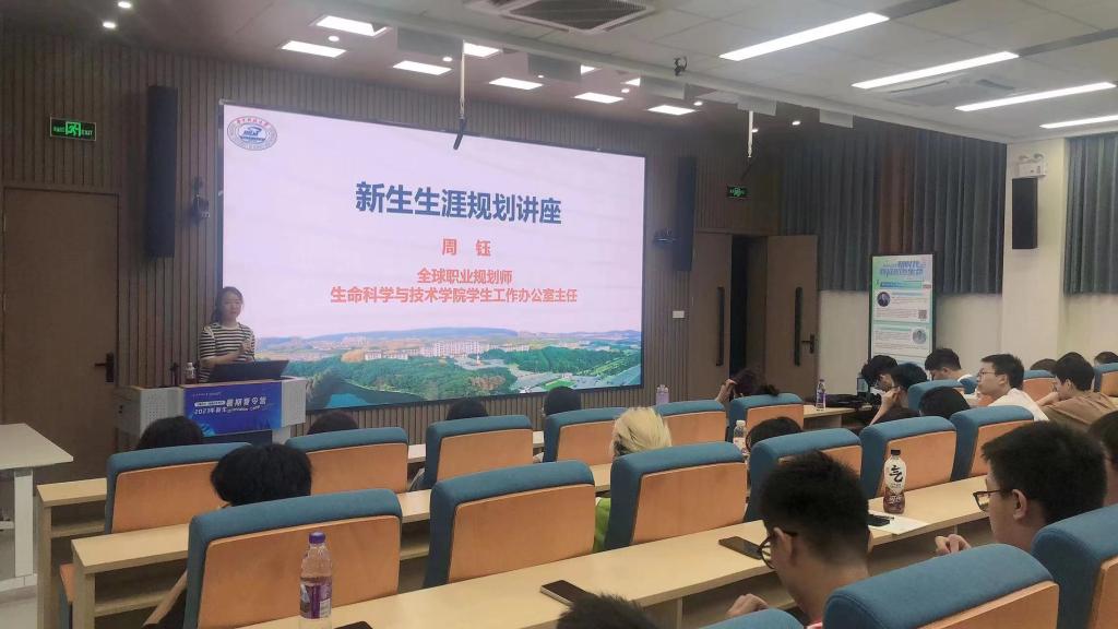 8月24日,在东十二楼616生命学院报告厅,中外合作办学办公室主任刘剑淼老师介绍后,同学们感受了由23级中外合作办学班级班主任春雷老师,彭欢老师,陈威老师带来的“领略科学之美”主题讲座,汲取了科学知识,感受到智育与美育的结合带给人的全面发展的帮助。