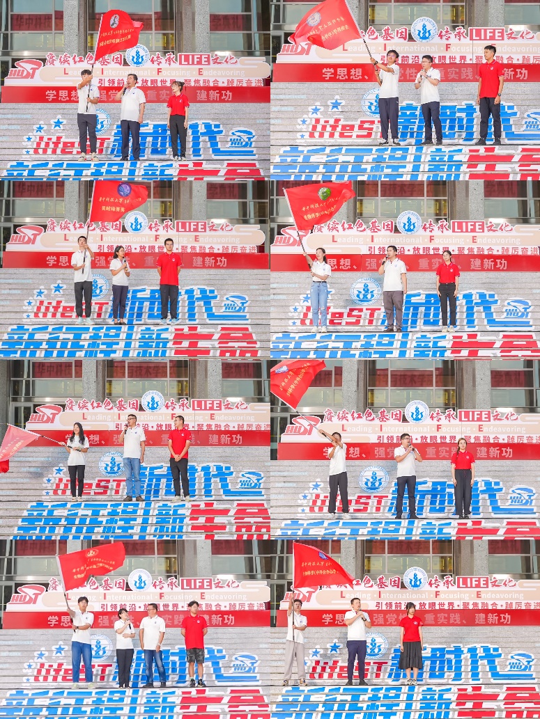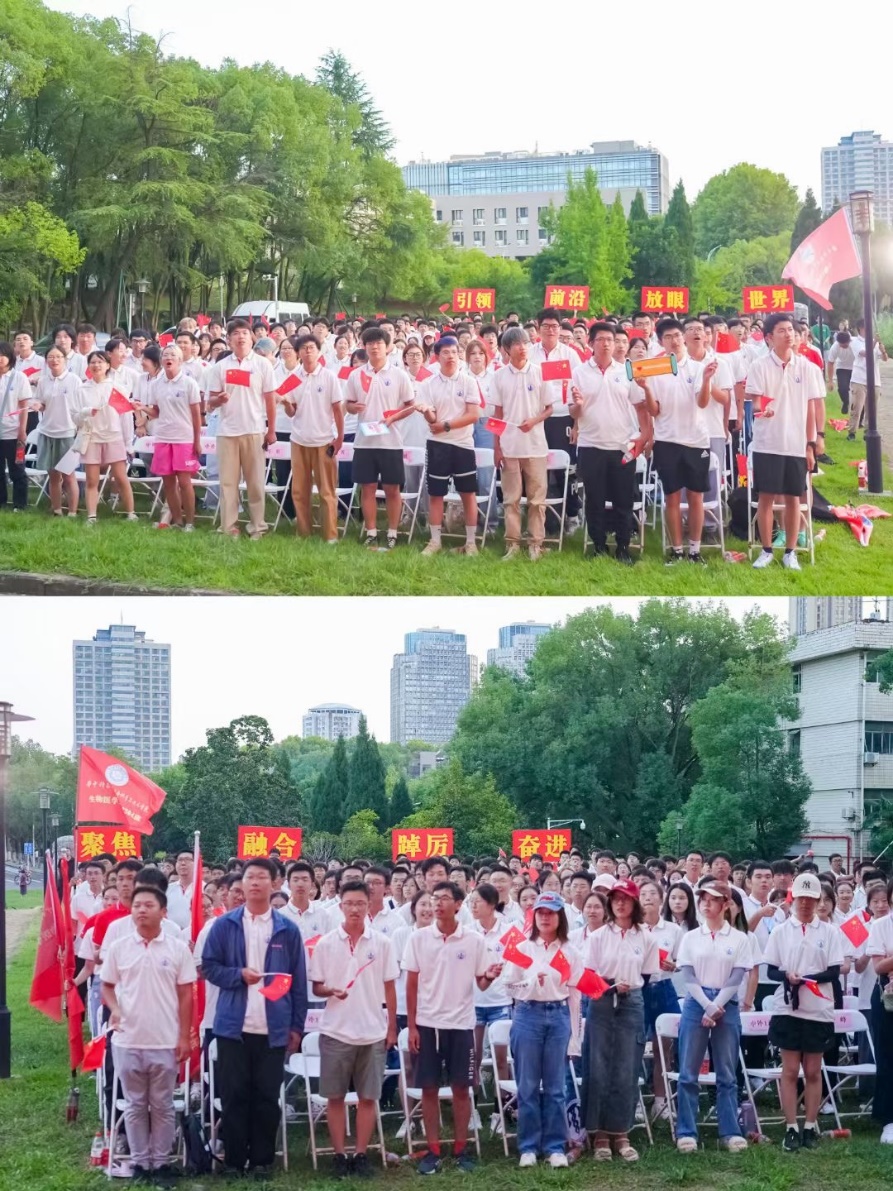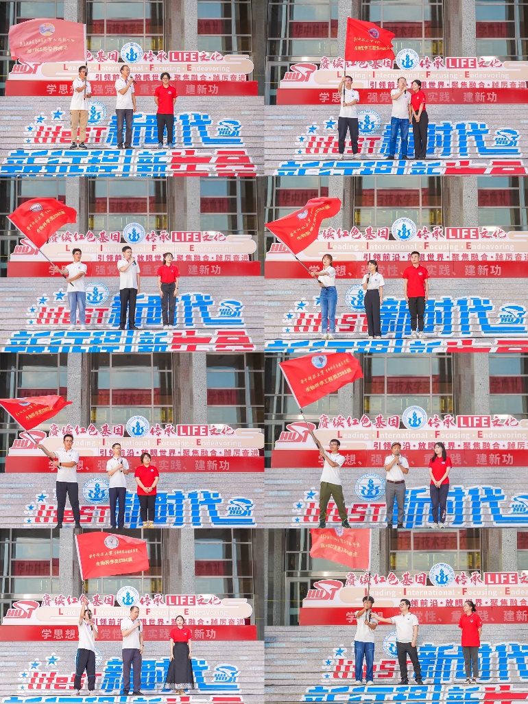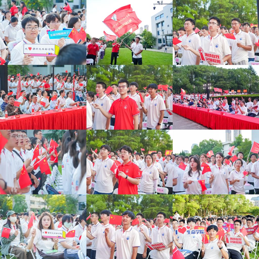 本科新生班级由各班教师班主任授予班旗,领誓班训。在这个庄重而神圣的时刻,各班同学们嘹亮地喊出班级口号,展现出生命人的精神风貌。他们将以崭新的姿态,踏上科学探索的道路,不断追求卓越、逐梦起航。16个本科班级授旗喊训后,全体本研学生起立喊出引领前沿、放眼世界、聚焦融合、踔厉奋进的LIFE文化口号,将典礼现场气氛推向高潮。