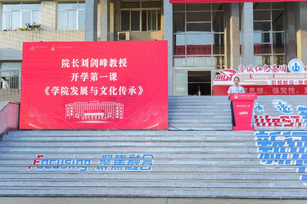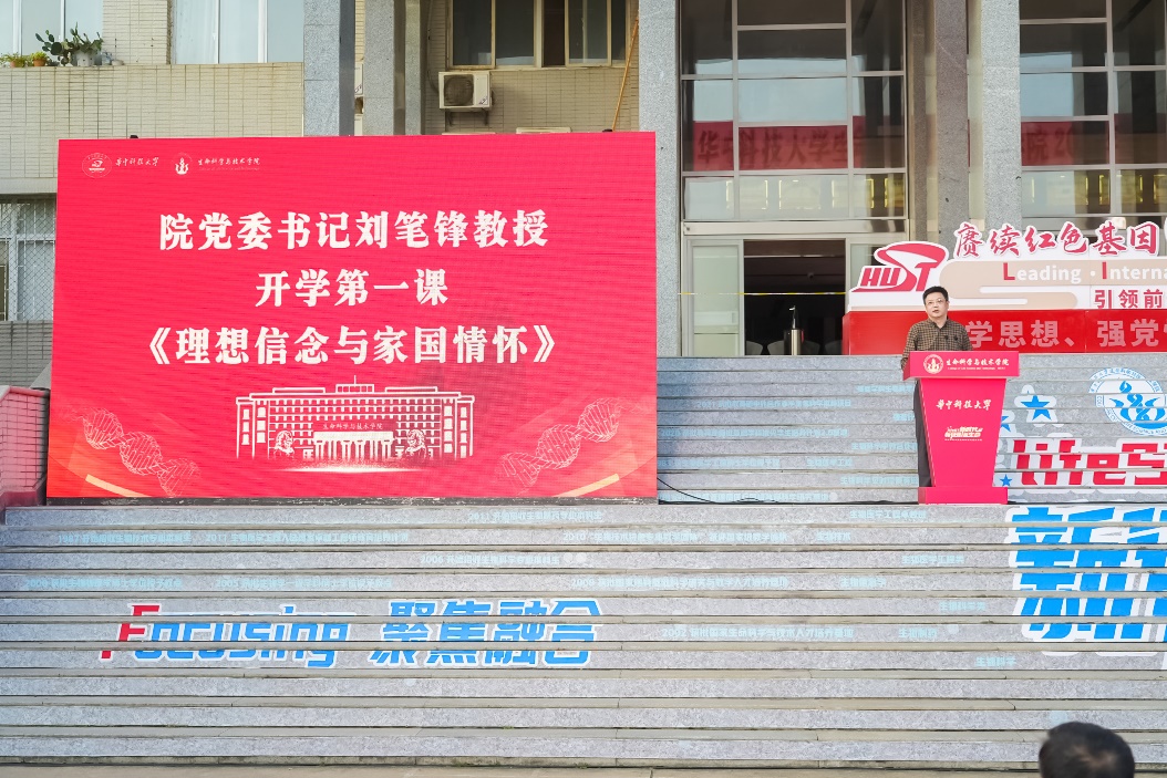 院党委书记刘笔锋教授以《赓续红色基因,传承LIFE文化,做新时代有为青年》为主题讲述开学第一课,进行理想信念与家国情怀教育。刘书记勉励大家坚定理想信念,早日站在党旗下,还要锤炼高尚品格,练就过硬本领,勇于创新实践。他分享了一代代生命师生持续接力、薪火相传的良好传统和学院特色鲜明的发展之路,寄语同学们纵观国际科技发展态势,做与新时代同向同行的当代青年。