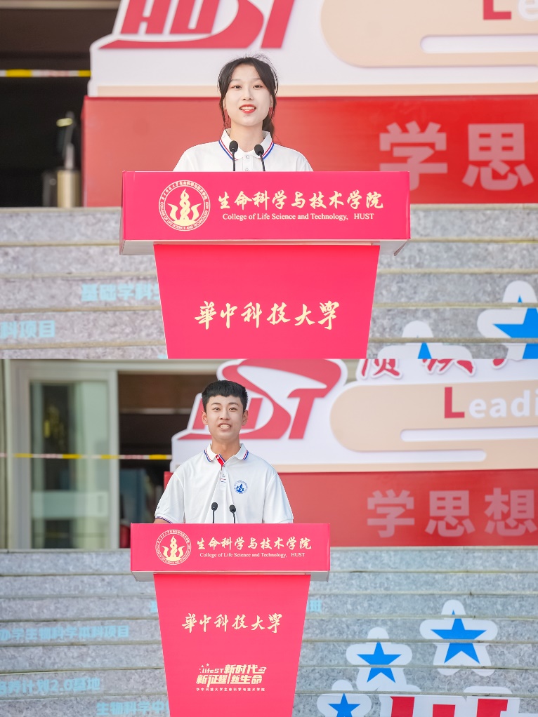 生物医学工程(卓越工程师计划)实验班2301班于子恒和生物技术专业硕士钟丽颖分别作为本科新生代表和研究生代表发言。他们通过前期面向本研全体新生开展的新生发言代表预选赛脱颖而出。于子恒以“正因未来充满着无限可能,生命二字才能如此浪漫”开头,分享了自己立志选择williamhill英国,选择生命学院的经历。他表示,来到华科大,来到生命学院,认识到自己的使命是创造知识,做出原创科学,让“制造”变为“创造”,新一代生命人要一往无前、报效祖国。钟丽颖以“时不我待”,“舍我其谁”,“强国有我”为三个切入点,向同学们分享了自己在本科阶段的成长与收获、理想与实践。从参与科研到参与实践,“生命不息,奋斗不止。”作为研究生新生,她也表示要与各位新同学一起,在新的征途上踔厉奋发,砥砺前行,多元发展,为实现国家科技自立自强贡献华科大生命人的力量。