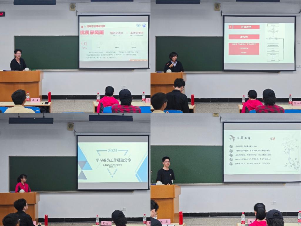 高年级的优秀班委向同学们分享经验。生贝2101班班长杨晨从班级学风建设和优良学风班评选具体介绍,特别指出班风建设应该因班制宜,因材施教;登峰2201班副班长罗学凯从沟通教务、实验室轮转等方面进行了副班长工作经验分享;生信基地2001班学习委员瞿明月从宏观角度对学习习惯和学习方法进行实例分析,并分享了许多可行性建议;生科基地2202学委李泽阳结合自身经历就具体事项分享了学委的日常工作与科创经验。