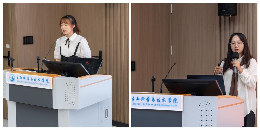 左:主持人、媒宣中心成员马艺菲;右:喻建美学宣讲团讲师陈银冰
