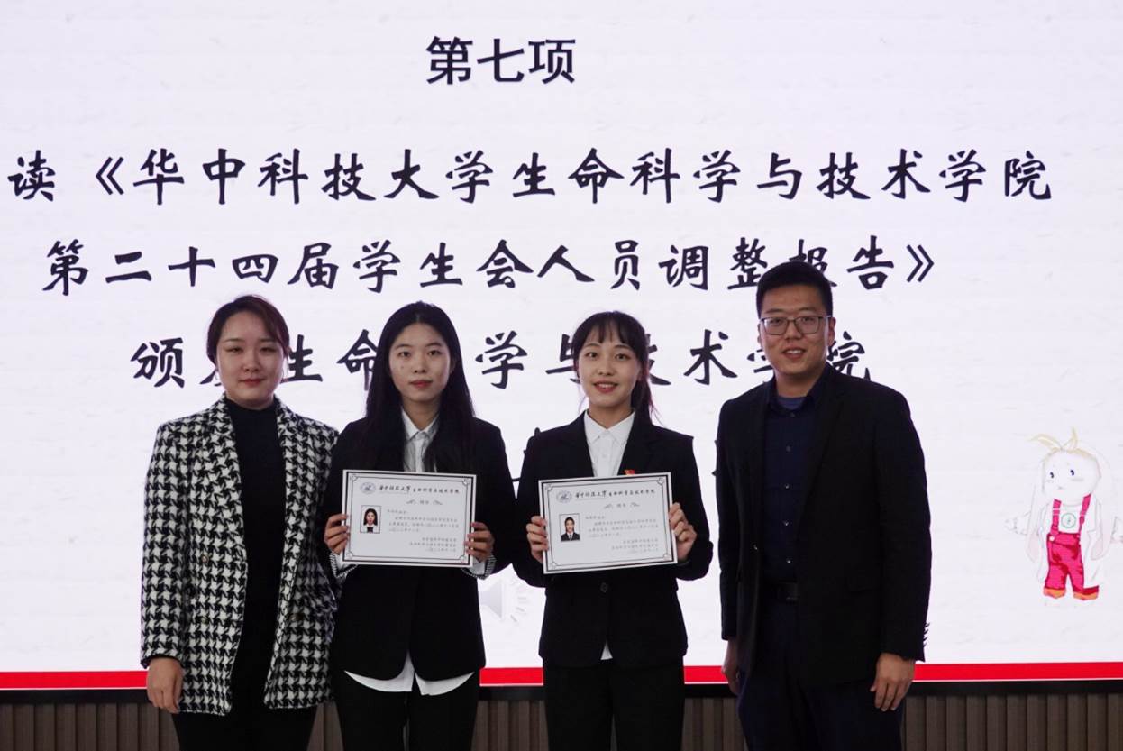 彭一鸣老师宣读第二十四届学生会人员调整报告并为颁发上一届主席团成员颁发聘书。会上还播放了第二十四届学生会工作总结视频,回顾了生命团学骨干过去一年实学实干,团结奋进的点点滴滴。