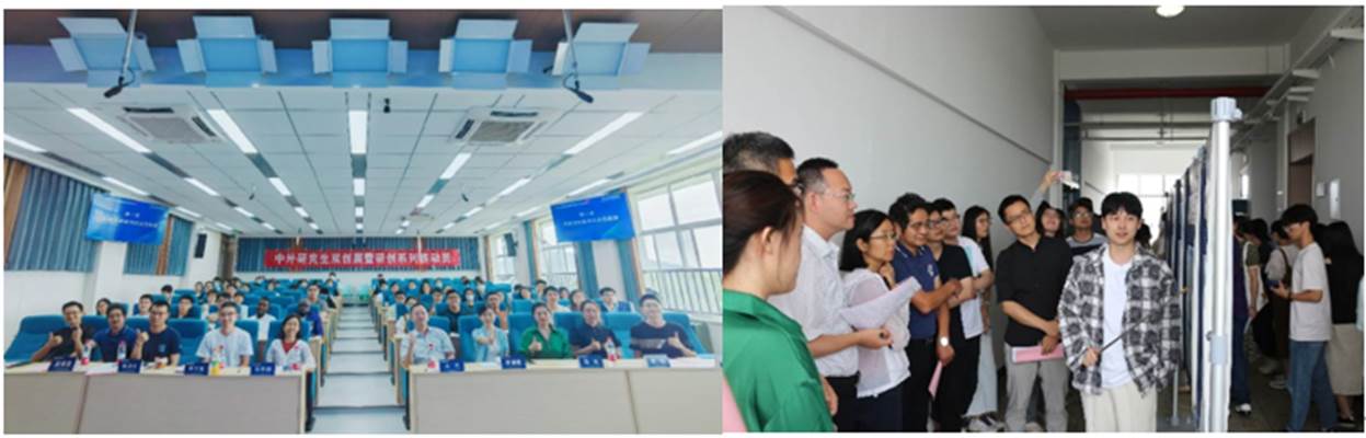 我们举办中外研究生双创展暨研创系列赛动员活动,系统介绍了研究生创新实践系列赛事, 40余份学术海报,20余次研究生报告吸引了老师同学们的目光,既展示了同学们的科研创新成果,也提供了宝贵的学习和合作机会。