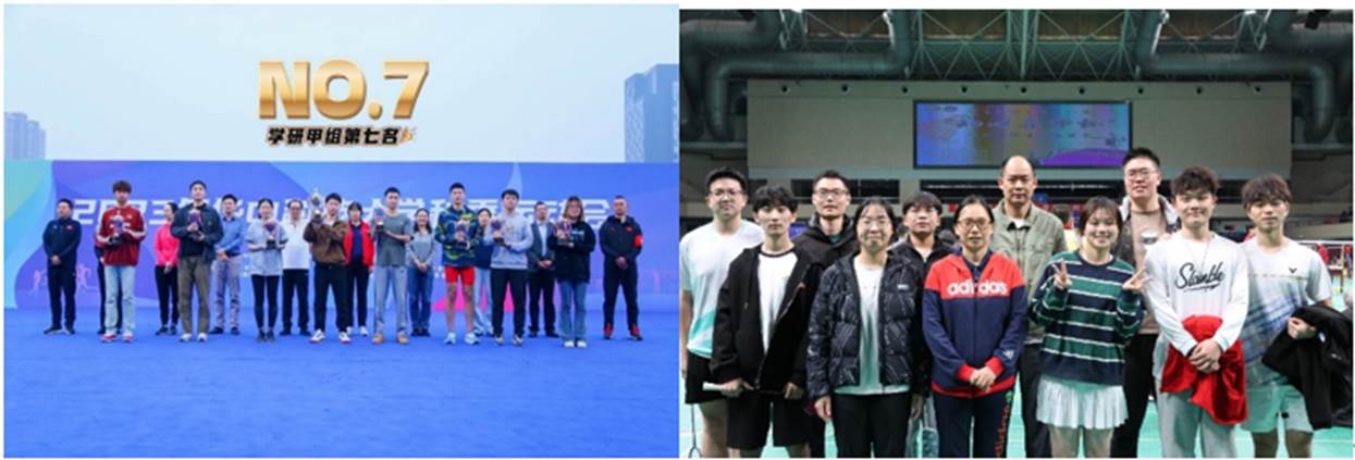 我们在校运会的比赛场上全力以赴,展现出卓越的风采,荣获2023年校运会“精神文明奖”。研究生学子不畏艰难,勇往直前,获学研甲组团体总分第7名。在“知心导师杯”羽毛球上,研究生导师与同学们们齐聚一堂,共同展现出运动的激情与活力,他们不仅在球技上切磋交流,更在精神上互相激励,拉近彼此距离。