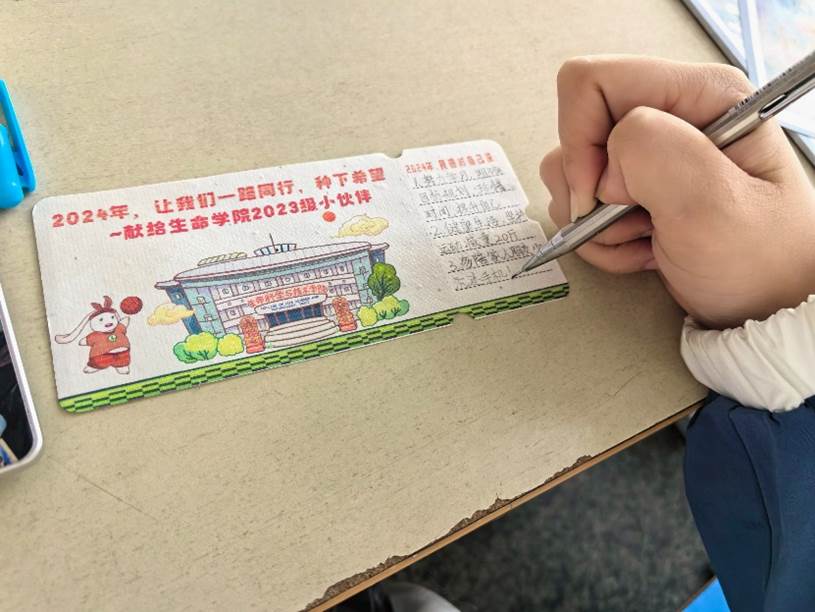 会后,辅导员赠予全体同学每人一张富有学院特色的纸质种子。希望同学们写下2024年的目标,种下梦想,收获希望。