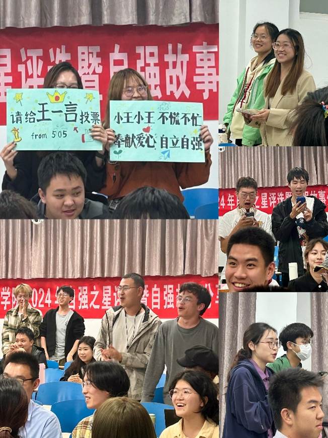 进入自强故事分享环节,24位自强之星候选人登台讲述,倾情演绎。蒋光鑫、钟千然、巨鹏远、王睿鹏、仝轩宇、曹双援、吕钟煜、徐婴祺同学执着追求热爱,在专业学习、科研竞赛、文体活动、社会实践等方面追求卓越、全面发展;和谐、李韦佳、王一言、孙艺菡、南翰承、胥瑾仪、申茜同学积极投身志愿公益服务,为建设团结互助、平等友爱的美好社会贡献力量;罗学凯、何苏婷、韩瑾、徐媛媛、陈锦宇、项乔同学在面对困难和挑战时表现出坚韧意志,不言放弃、勇往直前;蒋俊杰、黎佳慧、董佳在学习之旅中不断攀登,不惧挑战、再创佳绩。