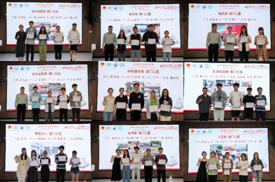 在五四庆祝环节,全体师生共同观看学生组织总结视频,视频回顾了过去一段时间,一位位指导老师深入一线,悉心指导,一位位学生骨干融入同学,无私奉献,在同学们急难愁盼处遮风挡雨,在同学们喜闻乐见处搭台演绎,在同学们成长发展处引领助力的生动点滴。彭一鸣老师代表学院团委向全体师生汇报团学工作取得的丰硕成果,激励生命菁英们不断增强做好青年工作的使命感,荣誉感和责任感,不忘初心,继续奋进。随后各学生组织部门指导老师为“部门之星”颁发荣誉证书,向全体生命青年表达五四青年节美好祝福,鼓励学生干部们学习先进,团结奋斗,再启新程。