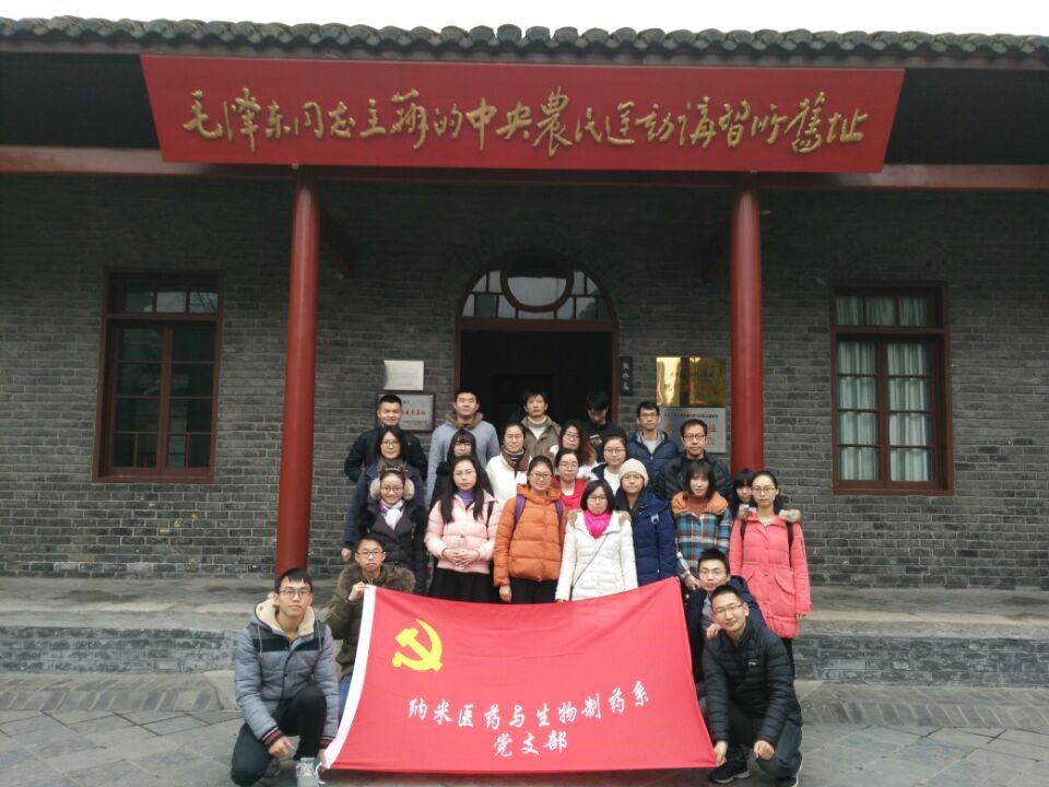 (通讯员 何帅丞)为深入学习贯彻宣传落实党的十九大精神,充分发挥和带动党员群众的积极性,1月20日上午,我院纳米医药与生物制药系研究生党支部,专程前往武昌中央农民运动讲习所旧址、中共五大会议旧址、毛泽东故居等红色革命基地参观学习,缅怀老一辈无产阶级革命家为中国革命胜利艰苦奋斗的峥嵘岁月。
