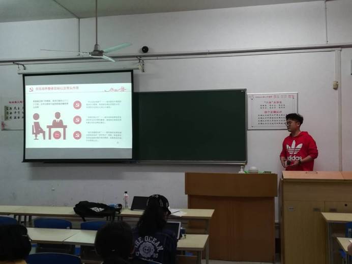 紧接着,党建中心宣传部部长裘豪代表宣传部进行整体工作发言, 他简要介绍了党建中心宣传部的部门职能、成员和主要工作,且着重讲述了他对部门成员的能力培养目标,他希望能通过部门工作的锻炼,成员们能在活动组织策划、宣传文字撰写、党建思想学习等多方面得到提升,同时也能不断追求“早日站在党旗下”“党旗在我心中”“我为党旗添光彩”的目标,在广大学生群体中起到带头模范作用。