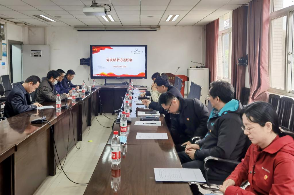 2022年3月22日下午,在东十一楼211会议室和二楼大厅举行了教工党支部书记和学生党支部书记2021年度履职尽责抓党建促发展工作述职会,学院首次采用了学生党支部工作成果海报展述职汇报的形式,学院党委书记刘笔锋、党委副书记卢群伟、党委副书记占艺、党委委员闫云君、各支部书记出席了会议。