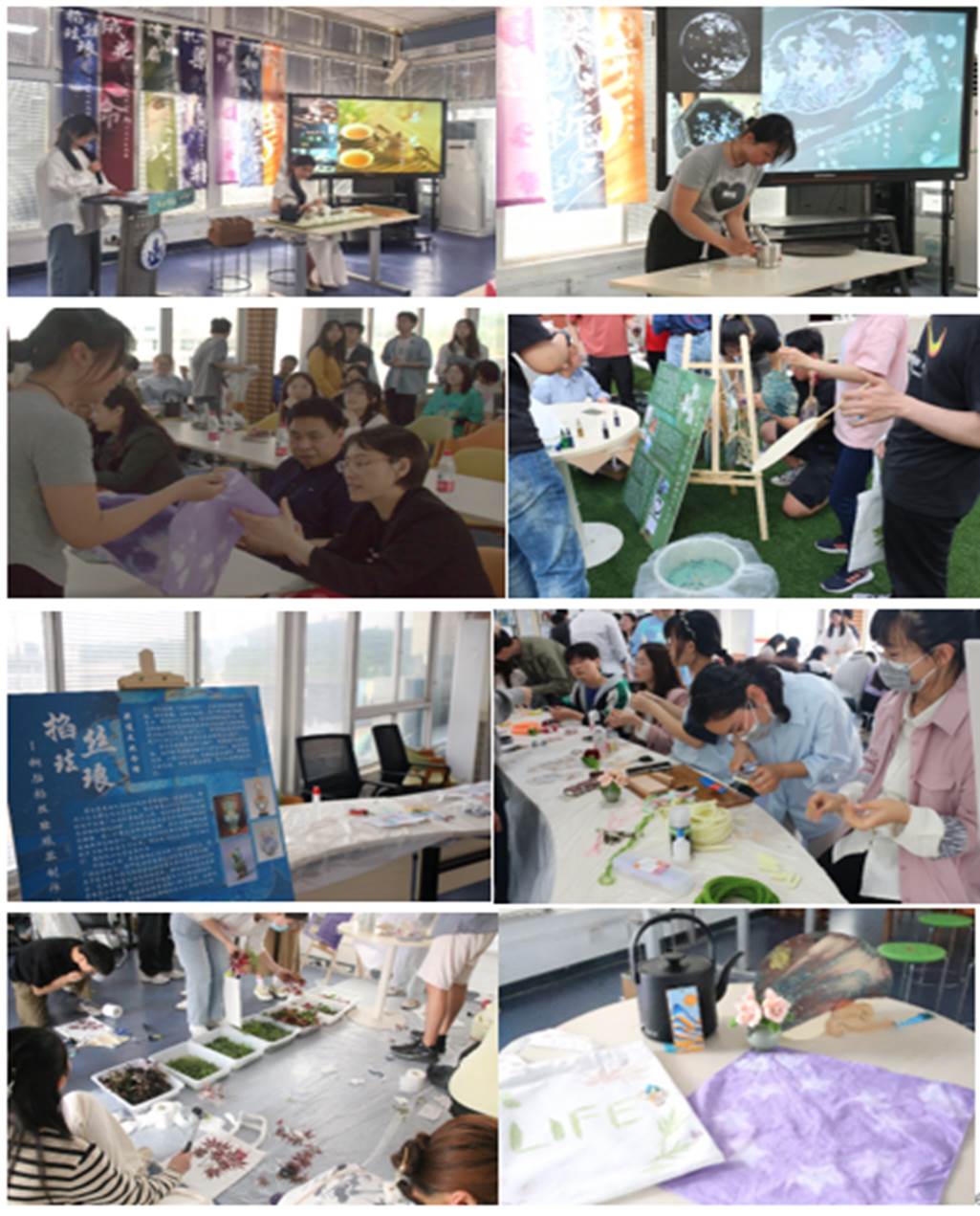 各支部代表对掐丝珐琅、绒花、漂漆扇、扎染、锤草印花、螺钿、茶艺七种非遗技艺,进行了文化背景介绍、制作流程展示,并讲解了生物技术赋能的创新发展,与会嘉宾在漂漆扇技艺上书写寄语。同学们纷纷走向心仪的展位,感受传统文化的魅力,在动手实践中体验现代生物技术与非物质文化遗产结合,探索传统文化在生命科学领域的活化途径。同学们表示,在活动中体验了非遗文化的魅力,增强了文化自信,加深了对专业的认识。作为新时代党员,要发挥带头作用,不断增强理论素养和专业能力,积极探索文化保护与传承先进技术,努力激发传统文化的生命力。