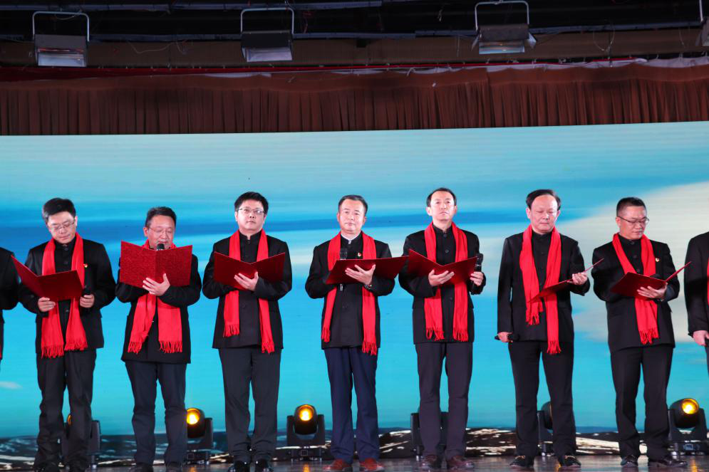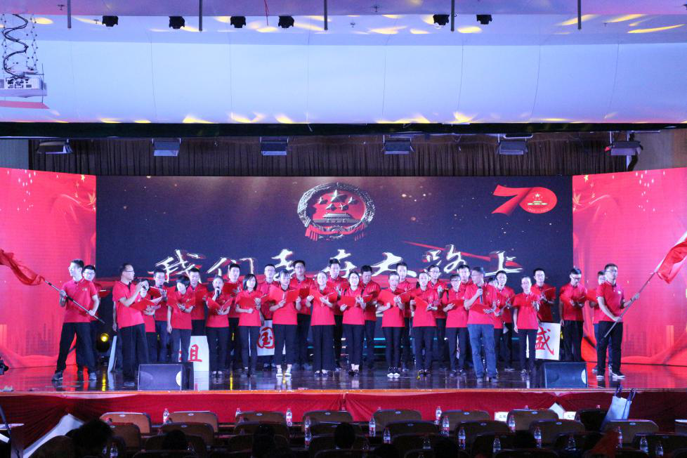 晚会最后,各位领导、全体演职人员以及现场观众全体起立,挥动手中的国旗,深情合唱《我的祖国》,用歌声祝福祖国繁荣昌盛!