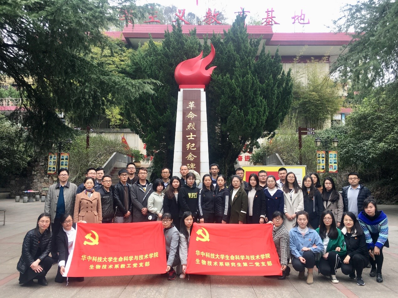 (通讯员 刘瑞宇 李冯程)致敬英雄不忘初心,缅怀英烈砥砺前行。3月23日下午,生命学院生物技术系教工党支部和研究生第二党支部在九峰山革命烈士陵园共同开展特色党日活动。两个支部全体党员和部分积极分子近40人参加活动,通过 参观陵园、现场讲授微党课、读书分享等,追思英烈,弘扬爱国主义精神。