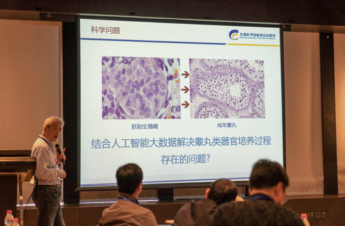Prof. Jiahao Sha gave a professional introduction to the process of male gonadal development, and mentioned that for many years scholars have been very interested in the study of spermatogenesis, but due to the time span of the study of spermatogenesis is too large and difficult to study, so this area has been a gap. Prof. Sha introduced the process of IPSC induced into primordial germ cells to construct human testicular organs, and explained the problems in the construction of human testicular organs, such as insufficient nutrient supply, indicating that this field is full of difficulties and research is still ongoing. After that, Prof. Sha briefly introduced the role of testicular somatic cells in each step of spermatogenesis and emphasized the importance of basal compartment microenvironment to spermatogenic stem cells, then introduced somatic cell/germ cell interaction, meiosis initiation and improved culture system to regulate ligand receptors. The discussion was particularly interesting to Professor Xue on this issue.