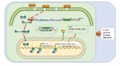 在这项研究中,通过对转移性三阴乳腺癌患者样本进行单细胞转录组测序分析,发现SIPA1在转移性癌细胞群中高表达。进一步证明在纤连蛋白fibronectin诱导下,细胞质中的SIPA1蛋白通过其N端核定位区域与核转运受体蛋白importin β1相互作用,进入细胞核,进而通过其C端DNA结构域(DBR)识别并结合含特征序列的基因启动子,调控基因转录。SIPA1蛋白在三阴乳腺癌细胞中调节与细胞粘附、细胞迁移、信号传导等相关基因转录活性,导致三阴乳腺癌细胞快速迁移与浸润,而缺失SIPA1蛋白DBR区域的三阴乳腺癌转移能力显著降低。该研究工作的第一作者为williamhill英国博士生郭丽娟和张婉君,williamhill英国苏莉教授、武汉大学人民医院龚益平主任医师和武汉科技大学廖兴华教授为该论文共同通讯作者。williamhill英国生命学院为本论文第一单位。