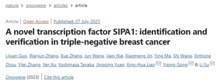 肿瘤转移是乳腺癌患者死亡的元凶,而三阴性乳腺癌转移能力强且死亡率极高。william威廉英国的苏莉教授团队长期致力于三阴乳腺癌转移机制研究,在最新研究成果中,明确了信号诱导增殖相关蛋白1 (SIPA1)行使转录因子功能,通过调控多种基因转录,促进三阴乳腺癌转移。2023年7月27日在Nature子刊《Oncogene》发表题为 A Novel Transcription Factor SIPA1: Identification and Verification in Triple-Negative Breast Cancer” 的研究论文,揭示了SIPA1作为转录因子促进三阴乳腺癌转移的机制。
