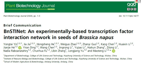 2024年1月13日,植物学领域权威期刊Plant Biotechnology Journal在线发表了williamhill英国栗茂腾教授课题组题为“BnSTINet: An experimentally‐based transcription factor interaction network in seeds of Brassica napus”的论文,该研究利用新型高通量蛋白互作鉴定技术mCrY2H-seq建立了油菜种子发育相关转录因子互作网络,为加快揭示油菜种子发育、物质积累等生命过程的分子机理奠定了基础。