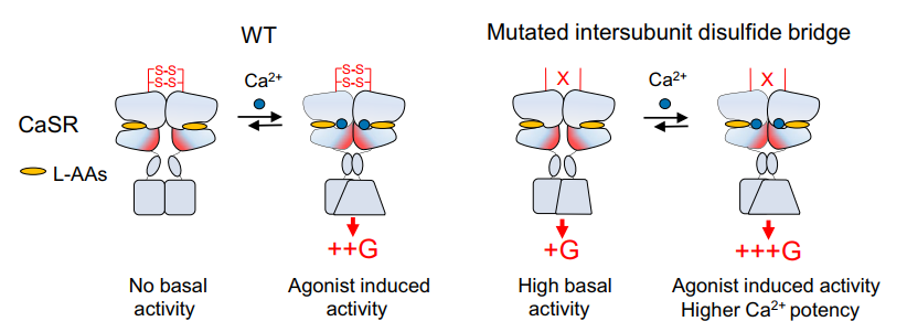 2024年4月25日,《通讯生物学》(communications biology)在线发表了williamhill英国生命学院刘剑峰教授课题组题为“Absence of calcium-sensing receptor basal activity due to inter-subunit disulfide bridges”(分子间二硫键抑制钙敏感受体的组成型活性)的研究论文。