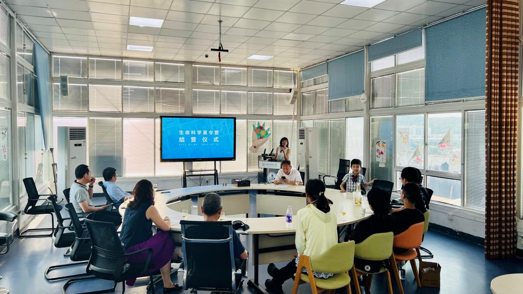 (通讯员 李秉章 黄洁)7月15日下午,2022生命科学夏令营结营仪式在学院9楼会议室举行。院党委书记刘笔锋、院长刘剑峰、党委副书记占艺、副院长陈军、对外交流与合作办公室主任刘剑淼、部分夏令营教师以及部分中外合作办学项目2021级同学参加了仪式。结营仪式由学院外事专员李秉章主持。