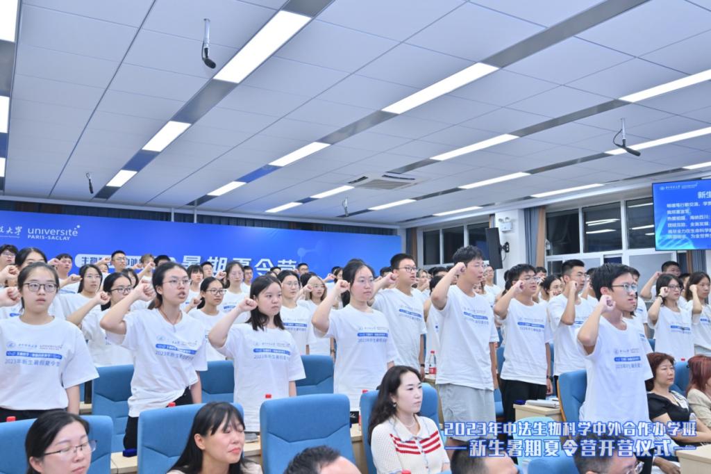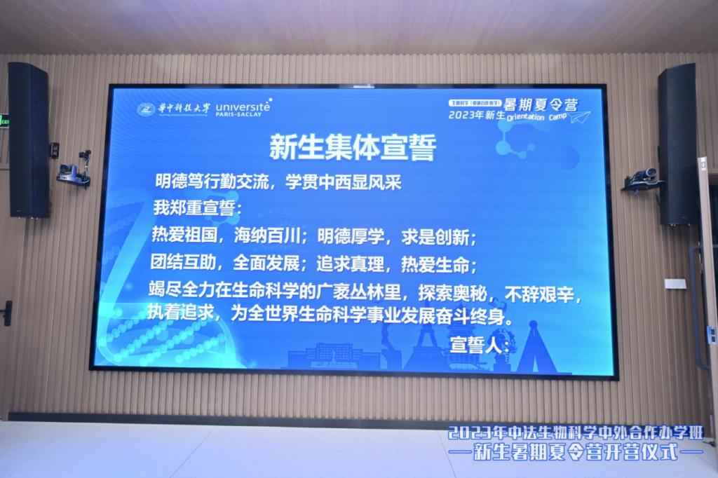 进入会场,富有生命力的音乐一下子调动了我们的情绪,大荧幕上播放着生科院的具体介绍以及去年此时学长学姐们夏令营生活的点滴记录。专业权威的生命科学院介绍词在一问一答之后一下子就把我们的热情点燃,将心中的理想点亮。开头时的“你想象过未来吗?”让我们不禁畅想未来的无限可能,畅想着这四年里我们能触及到的无限领域。结尾时的“你就是未来。”更是让我们感受到了学校给予我们的厚望以及殷切的嘱托,我们心中更加澎湃了。而学长学姐们制作的夏令营记录又是另一番景象。柔和欢快的曲调让人心旷神怡而又兴致勃勃,期待已久的夏令营生活日程像画卷一样在我们的面前徐徐展开。简单的视频介绍过后,学院的各位领导嘉宾和老师学长学姐们一一上台为我们详细介绍了生命科学对于个人社会国家的重要意义以及我们中外合办项目的一些具体内容,激励并鼓舞了我们学习的积极性,让我们在心中悄然种下了对未来四年规划的种子。每位嘉宾的发言都带领我们层层深入理解这个大家庭的幸福与温暖,积极与向上,我们的心早已神往。而随后的新生代表发言以及全体宣誓部分更是带领我们将志向宣言呐喊而出,梦想的羽翼就此而丰满。仪式尾声,院领导们为我们颁发了独属每个人的徽章,看着蓝色徽章上自己的名字在灯光下熠熠生辉,心中隐隐处也斑驳着踌躇满志的光辉。