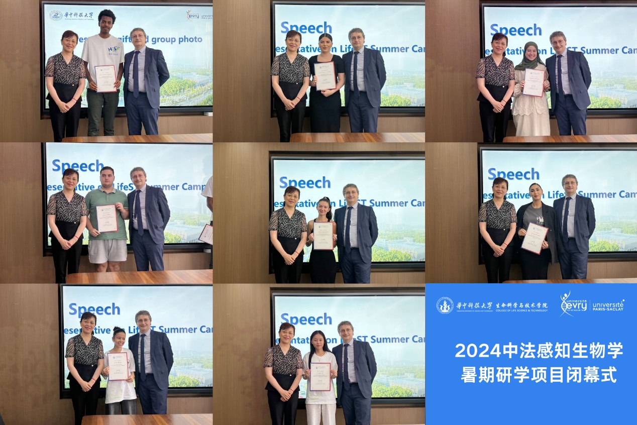 6月26日,2024中法感知生物学暑期研学夏令营闭幕式在生命学院221会议室举行。我校副校长湛毅青、法国埃夫里-巴黎萨克雷大学校长Vincent BOUHIER、副校长Christelle MONVILLE、Hichem ARIOUI出席了仪式。会议由我院院长刘剑峰主持。