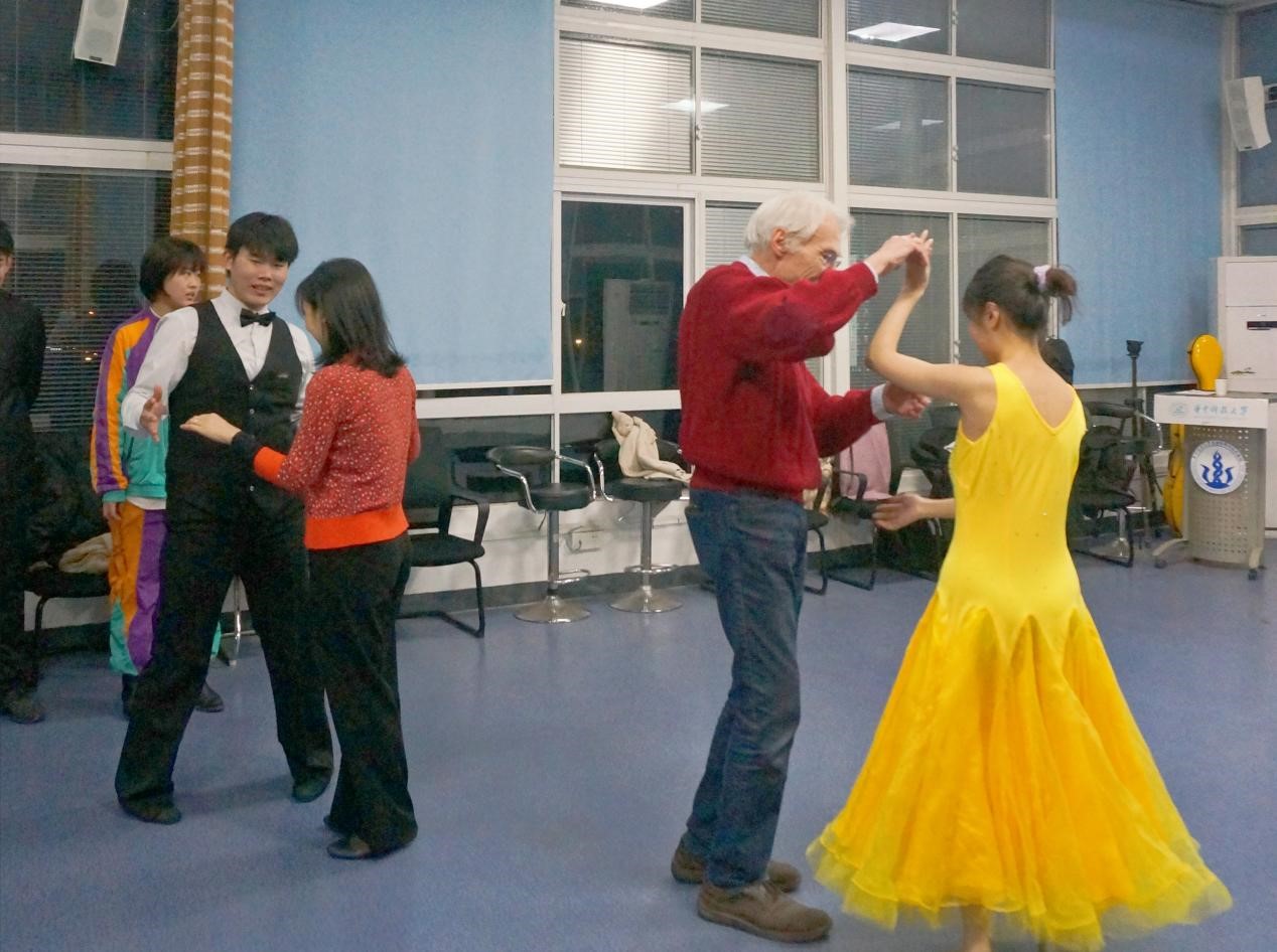 During the free dance session, students invited Prof. Alain and Prof. Jianmiao Liu to dance together. Joyful atmosphere lasted for a long time.