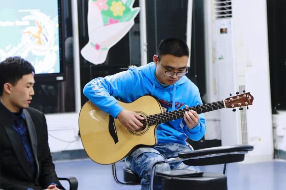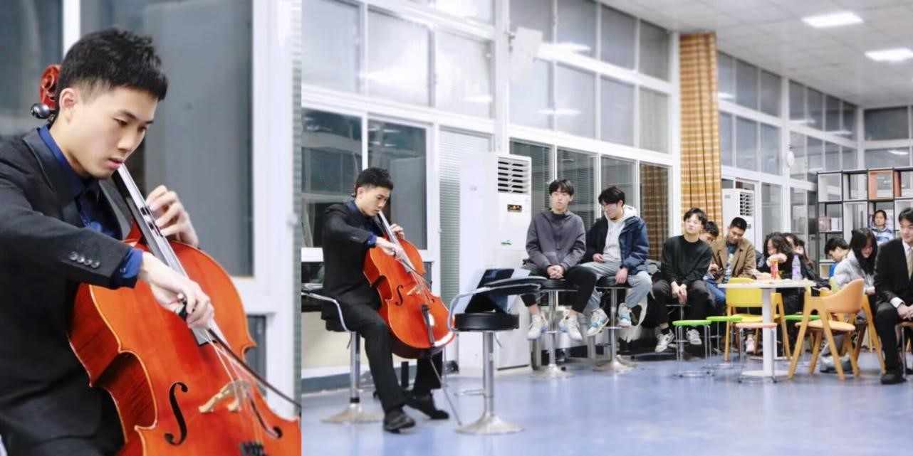 Yiping He brought a cello and played "Meditation”, an intermezzo of a French opera "Thaïs" created by French composer Massenet. Its gentle lyrical tune touches everyone's heart, and such a beautiful French song undoubtedly narrows the distance between students and French teachers. The superb piano art from France touched everyone's heart; Xuanang Wen's enthusiastic performance of guitar playing and singing "Love Story" led the chorus of the audience, the atmosphere was fierce, and the applause was thunderous.